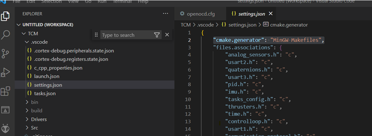 add extensions: C/C++, CMake Tools, Cortex-Debug: